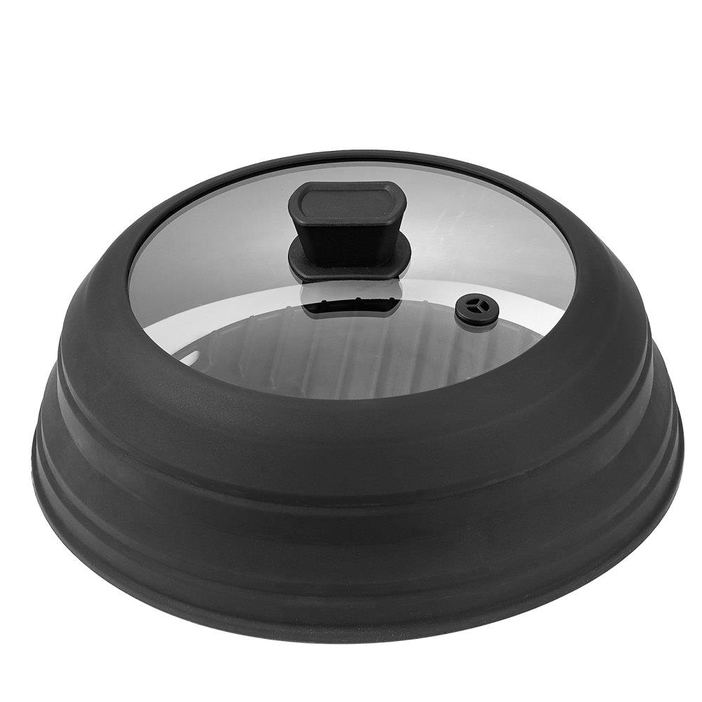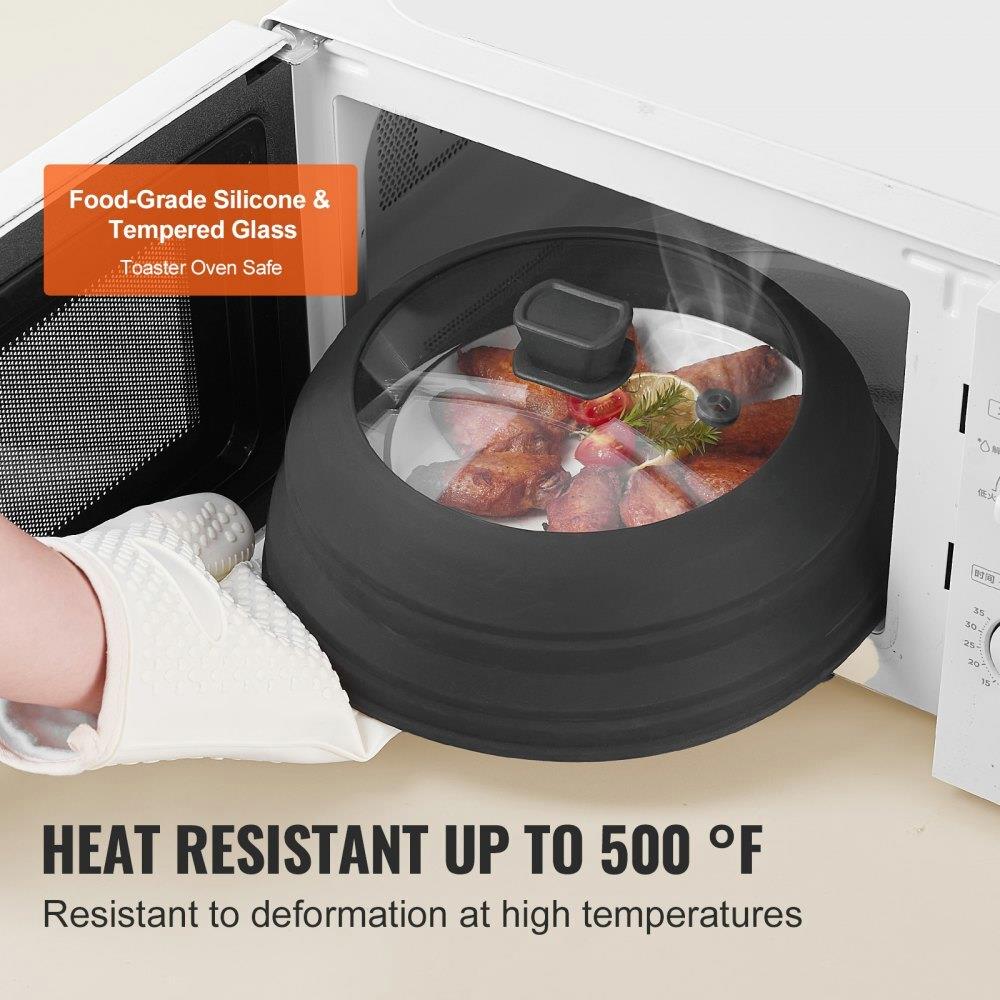 10.8″ Collapsible Microwave Splatter Cover with Heat-Resistant Silicone Mat – Tempered Glass Lid, 500°F Safe