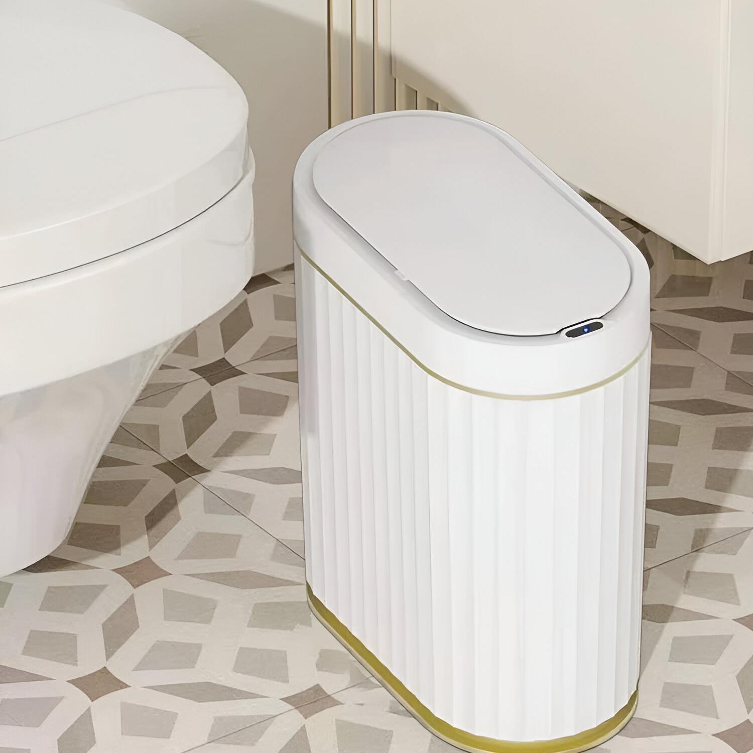 Experience a cleaner, smarter way to manage waste with this 2 Gallon Slim Motion Sensor Trash Can. Designed for modern homes and busy lifestyles, this sleek trash can features a hands-free, motion-activated lid and a chic white finish with gold trim that adds sophistication to any space. From the bathroom to the kitchen or office, it brings together hygiene, technology, and style—all in a compact footprint.