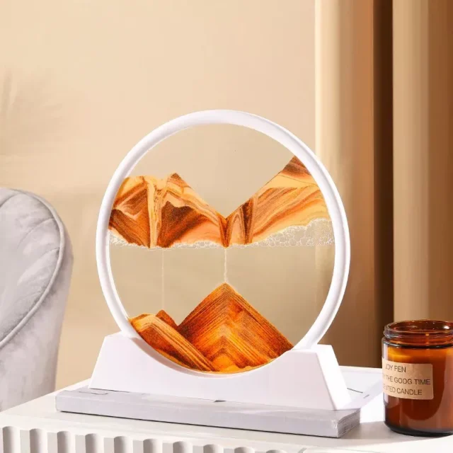 Transform your space with the soothing beauty of the 3D Moving Sand Art Hourglass – a stunning fusion of nature, art, and motion. This hypnotic piece of home décor features layers of fine, colored sand suspended in liquid within a round glass frame. With each gentle flip, the sand cascades and flows, creating ever-changing landscapes that resemble mountains, oceans, deserts, and deep-sea scenes. No two movements are ever the same, making this art piece a dynamic display of tranquility and wonder.