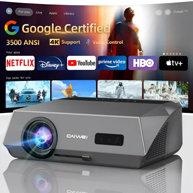 Running on the latest Android 14 system, this projector puts entertainment at your fingertips. Access over 5,000 apps from Google Play, including Netflix and YouTube, with built-in Google Cast, AirPlay, DLNA, and voice control. Say “Hey Google” to play, search, or adjust settings hands-free. With WiFi 6 and Bluetooth 5.4 support, you can connect faster and stream smoother than ever before.