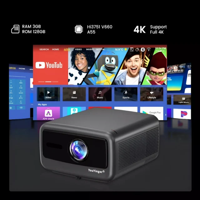 • Smart Android OS – Access streaming apps, YouTube, Netflix, and more directly from your projector.