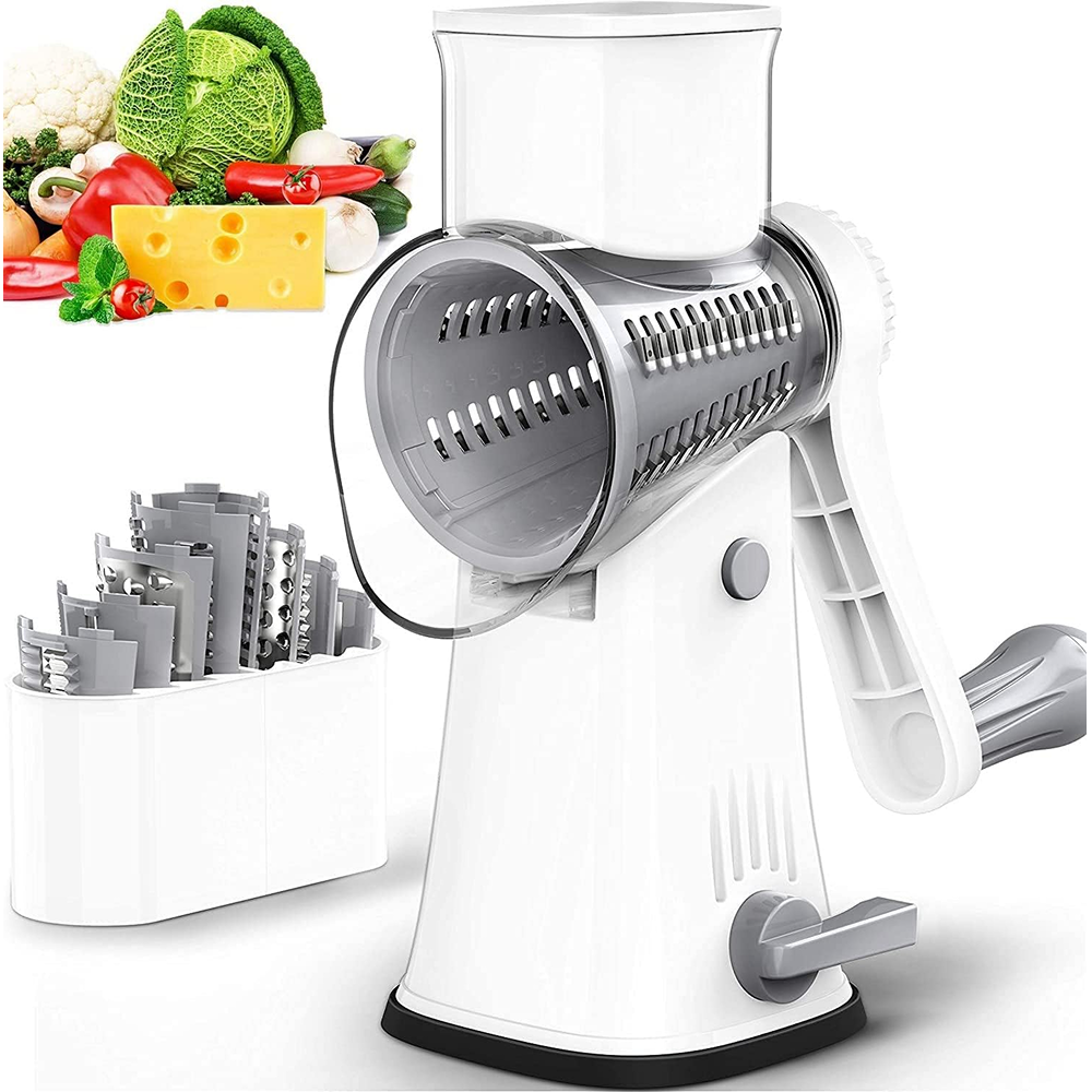 5-in-1 Rotary Cheese Grater & Vegetable Slicer with Stainless Steel Blades