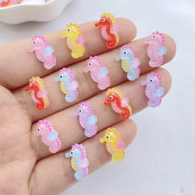 This set of cute Hippocampus Japonicus resin ornaments is perfect for all sorts of creative endeavors. They are ideal for adding a unique touch to jewelry pieces such as earrings, necklaces, and bracelets. Additionally, these colorful ornaments work wonders in nail art and can be glued onto acrylic nails or incorporated into manicures for a charming aquatic theme. If you’re into customizing hairpins, barrettes, or headbands, these ornaments will make your designs pop with personality. Whether you’re a seasoned crafter or just starting your DIY journey, these ornaments are a must-have for any creative project.