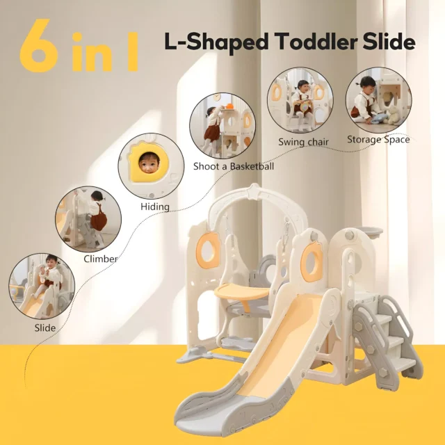 With a smooth L-shaped slide, cozy swing, basketball hoop, and handy toy storage, this set transforms any room into a world of imagination. It’s more than just playtime—it’s a chance for children to build confidence, develop balance, and strengthen coordination while having an unforgettable time.