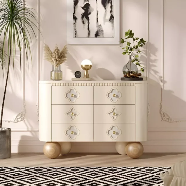 • Eye-Catching Design: The black and light brown color scheme, complemented by striped details and contrasting cabinet drawers, adds a sophisticated touch to your workspace.