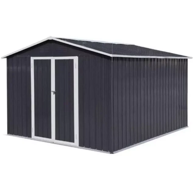 The shed features a sloped roof design, not only providing additional storage space but also preventing water accumulation, which can cause rusting. This smart design element ensures longevity and maintains the shed’s pristine condition over time.