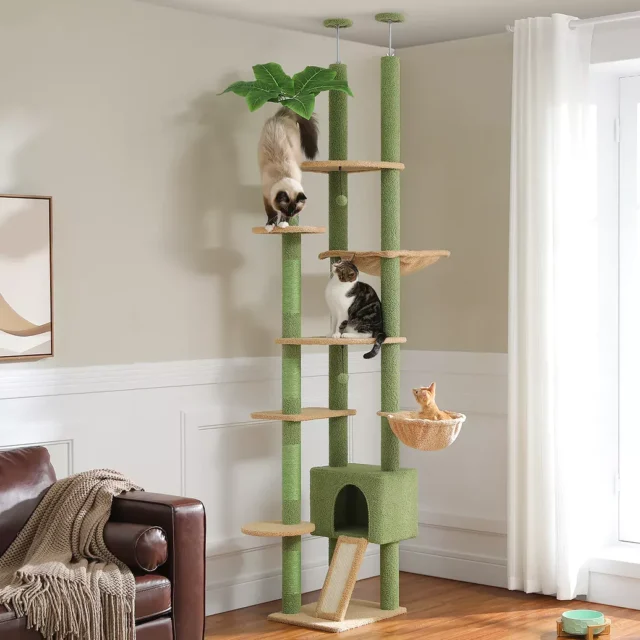 Give your cats the ultimate playground with this 81-inch tall multi-level cat tree tower — a perfect blend of comfort, fun, and stability. Designed for large cats and multi-cat households, this tall structure offers endless entertainment and cozy resting spaces. From scaling tall posts to curling up in plush condos, your feline companions will have everything they need to stay happy, healthy, and active.