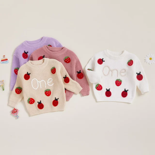 Dress your baby girl in cozy cuteness with this Strawberry Embroidered Knit Sweater. Designed for ages 9 to 18 months, this charming long-sleeve top combines comfort, warmth, and playful style. The soft knit fabric feels gentle on delicate skin, while the vibrant strawberry and letter embroidery adds a sweet, cheerful touch perfect for everyday wear or special moments like birthdays and family photos.
