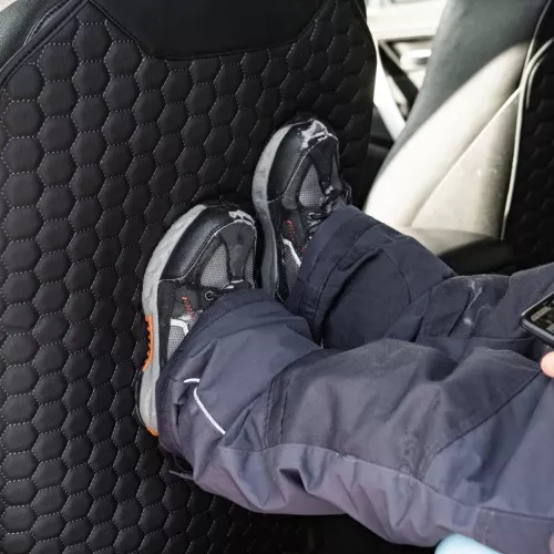 Featuring a sophisticated solid black color with a hexagonal pattern, our seat back protector fits seamlessly into any car interior. It not only guards your seat upholstery against dirt and shoe marks but also adds a touch of style.