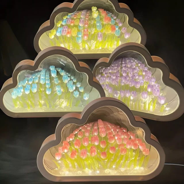 Transform your bedroom, vanity, or living room with the soft, enchanting glow of the Cloud Mirror Tulip Lamp. Designed to blend dreamy aesthetics with practical lighting, this unique decor piece doubles as both a charming mirror and a cozy night light. With delicate simulated tulips nestled against an acrylic mirror frame, it creates a whimsical, peaceful vibe in any setting. Whether you’re relaxing before bedtime or looking for the perfect gift, this tulip lamp offers a blend of gentle beauty and soft illumination that feels both modern and poetic.