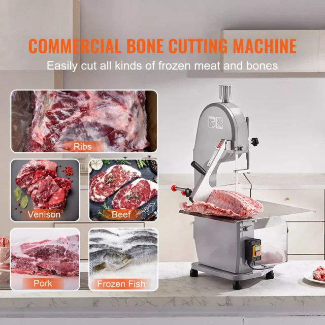This high-performance meat bandsaw is ideal for restaurants, butcher shops, supermarkets, seafood markets, and meat processing plants. Whether you’re slicing ribs, venison, lamb bones, or frozen fish, this machine delivers clean, precise cuts every time—freeing your hands and elevating your kitchen efficiency.