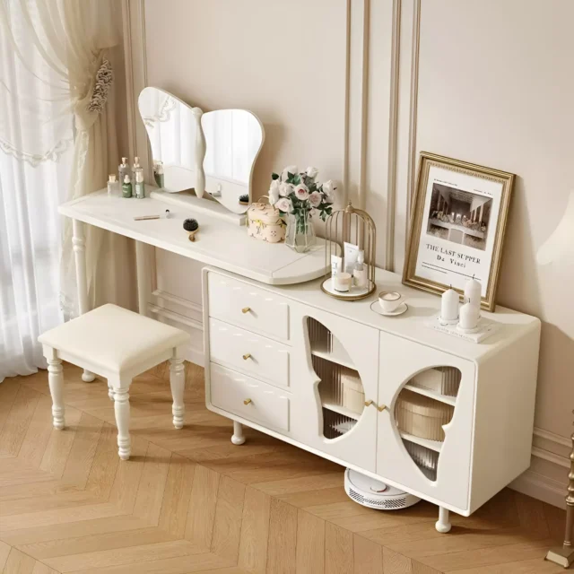 This dressing table isn’t just furniture—it’s your personal beauty station. Perfect for daily makeup sessions, skincare routines, and hair styling, it provides the ideal space to start and end your day feeling confident and organized. Its simple yet refined design fits seamlessly into modern, minimalist, or European-inspired bedrooms, adding both function and luxury to your home.