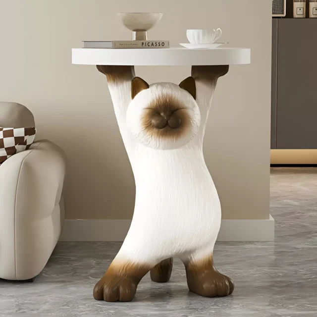 • Creative Design: Features a charming Siamese cat holding a tray—both cute and functional.