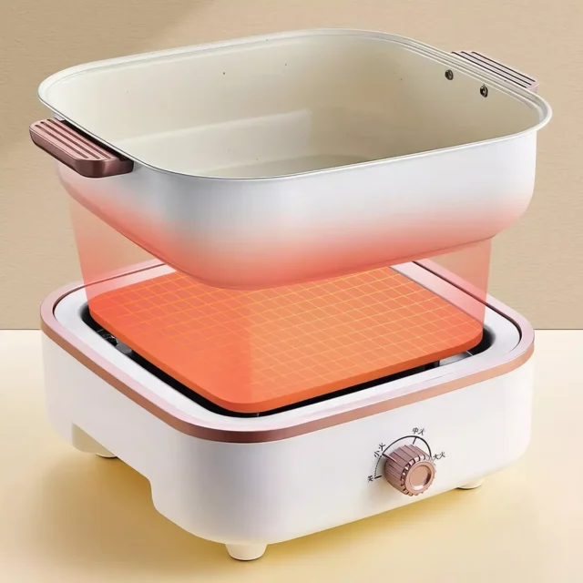 • Dual Controls: Separate temperature zones for cooking and warming simultaneously.
