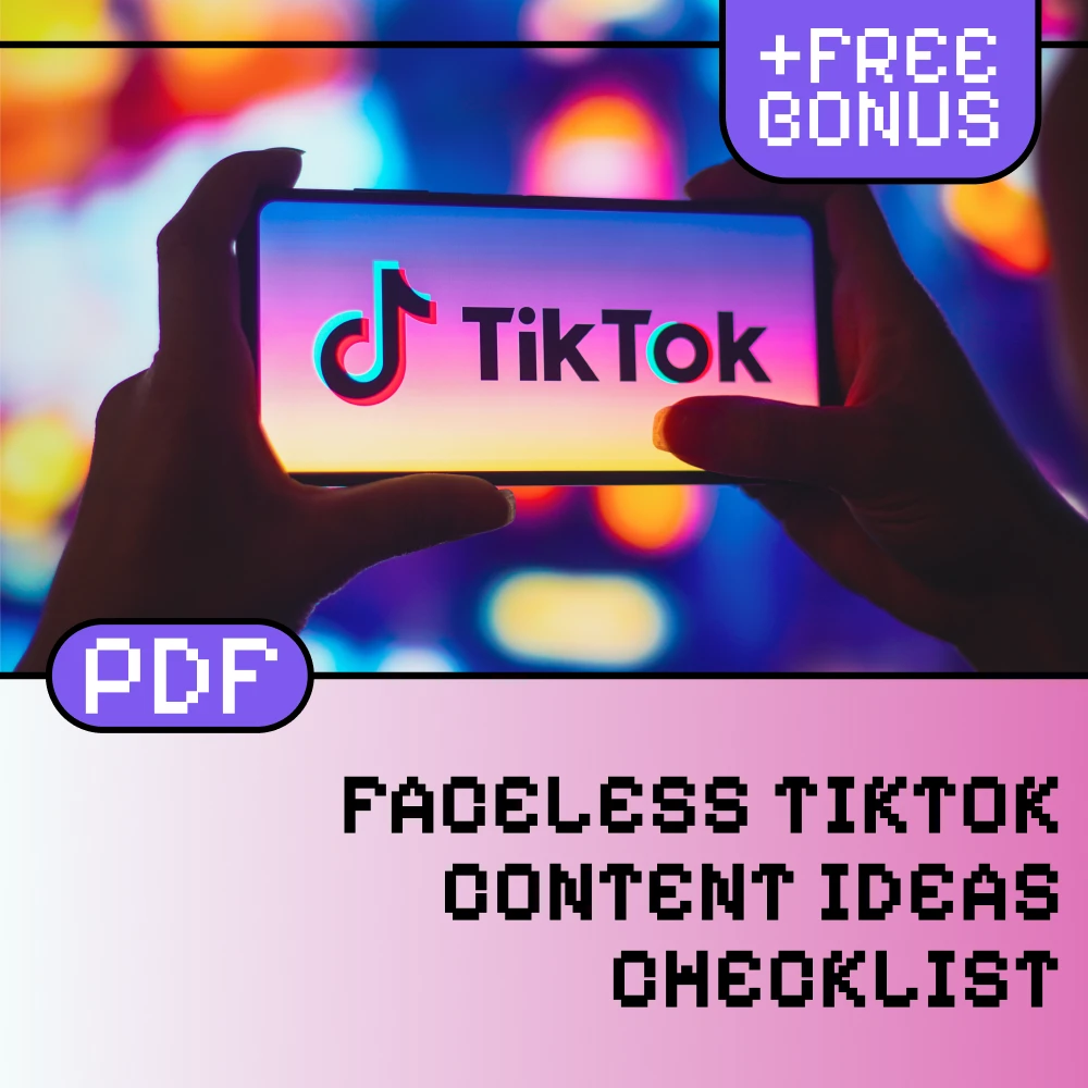 Faceless TikTok Content Ideas Checklist | Digital Download for Viral Faceless TikTok Videos, eBook Style Guide, Viral Content Creator Resource