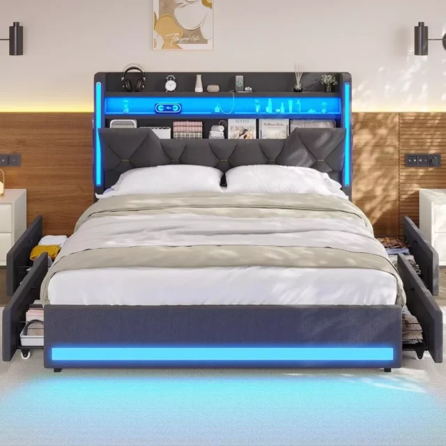 Perfect for modern bedrooms, apartments, or anyone who values both function and comfort, this Full Size Upholstered Bed Frame with Storage and LED Lighting redefines what it means to sleep in style. It’s more than a bed—it’s your personal retreat. Bring elegance, innovation, and practicality together, and wake up every morning in a space that truly works for you.