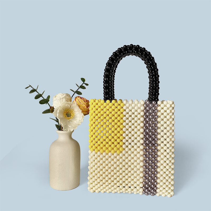 Step into effortless elegance with this handmade color-blocked beaded handbag — a compact yet striking accessory designed to elevate your outfit, no matter the occasion. Combining vintage charm with a bold contemporary twist, this small square handbag is a true conversation starter. Each bead is carefully woven by hand, creating a textured and luxurious finish that speaks volumes about the artistry behind the design.