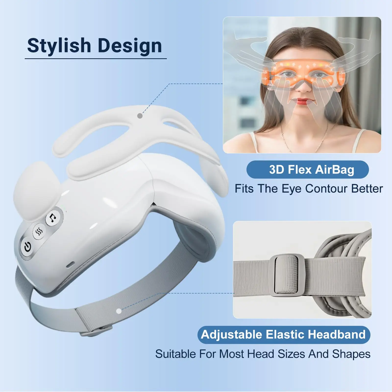 The massager features a double-layer 3D airbag design that gently molds to your face, providing an even, relaxing pressure that stimulates circulation and relieves tension. It offers three temperature levels (104°F, 107.6°F, and 113°F), ideal for reducing puffiness, easing dry eyes, and improving sleep quality. With five customizable massage modes, you can switch between gentle relief or deeper massage therapy with a simple touch.