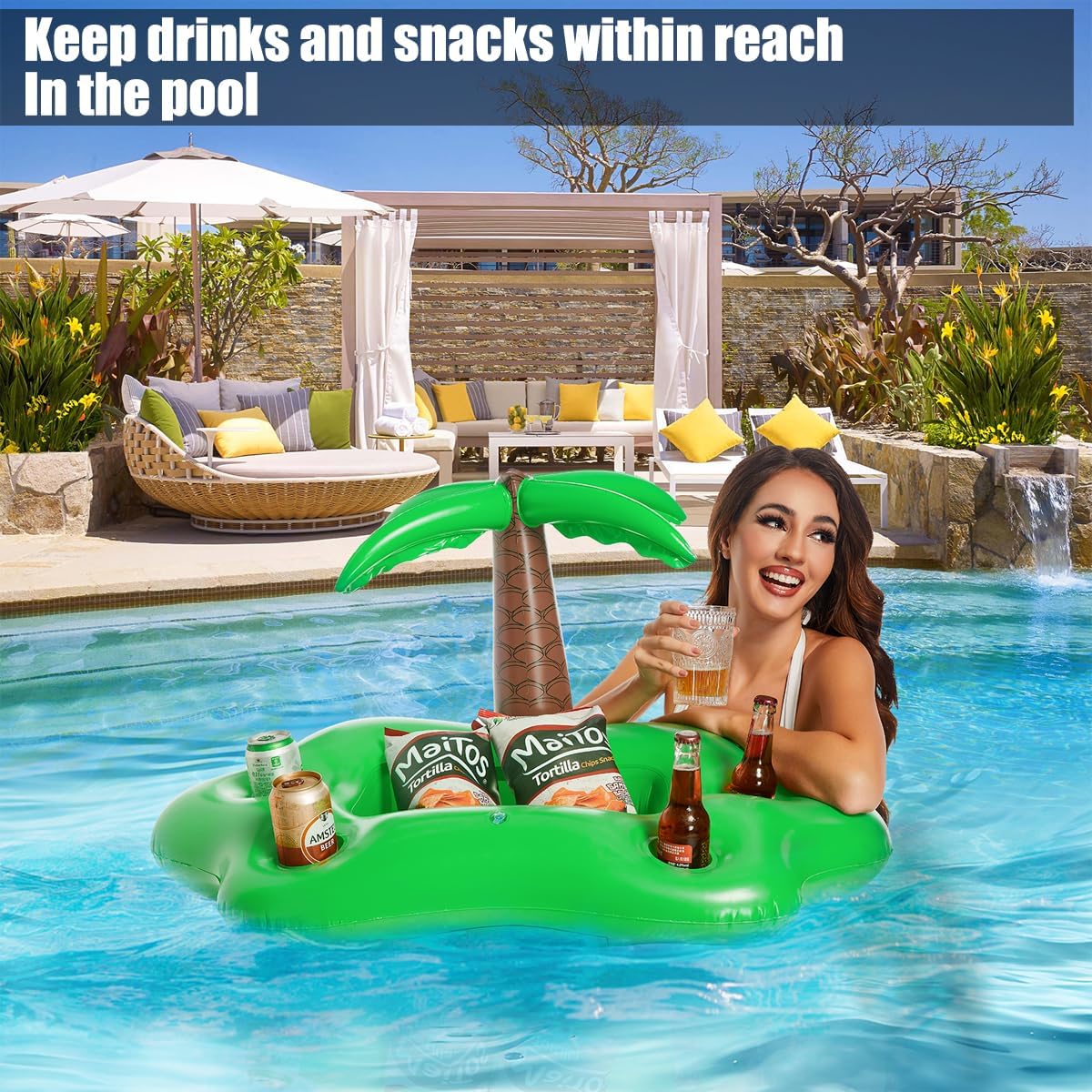 Bring vacation vibes to your backyard with the Inflatable Palm Tree Pool Float with Built-In Drink Cooler, Cup Holders & Coasters. This fun and functional float is more than just eye-catching—it’s the ultimate poolside companion for chilling, socializing, and sipping your favorite drinks in style. Designed to float smoothly on the water, this tropical float features a vibrant palm tree design that instantly sets the mood for summer fun. Whether you’re lounging solo or hosting a pool party, this float is the perfect centerpiece for good times under the sun.