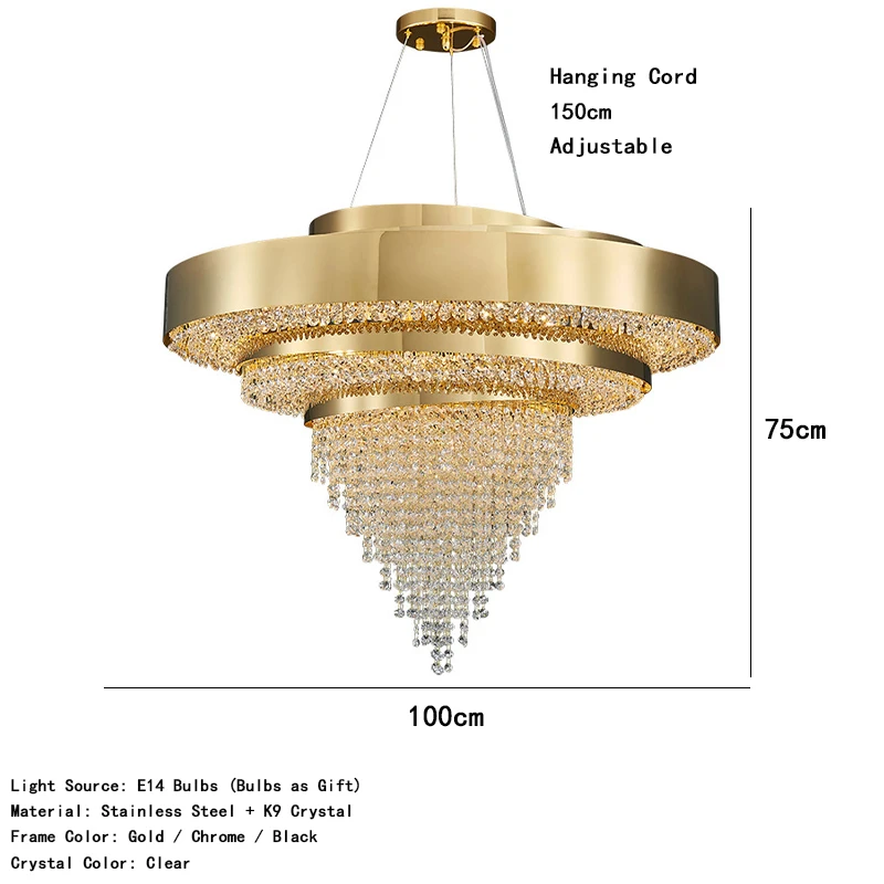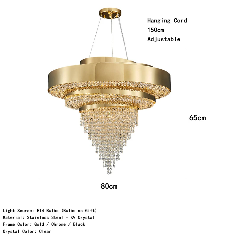 | Large | 39.37 | 29.53 | 59.06 (Adjustable) | Stainless Steel + K9 Crystal |