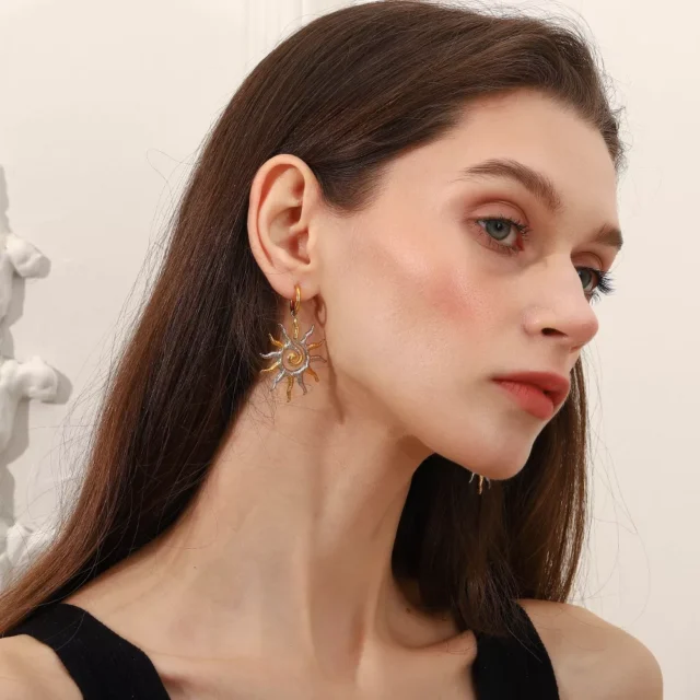 Bring a dash of sunshine and style into your life with these mixed color pleated texture sun-shaped earrings. They’re more than just jewelry — they’re a daily dose of confidence and charm. Slip them on, shine effortlessly, and make every moment feel special. Add them to your collection now and embrace a look that’s as bright and bold as you are.