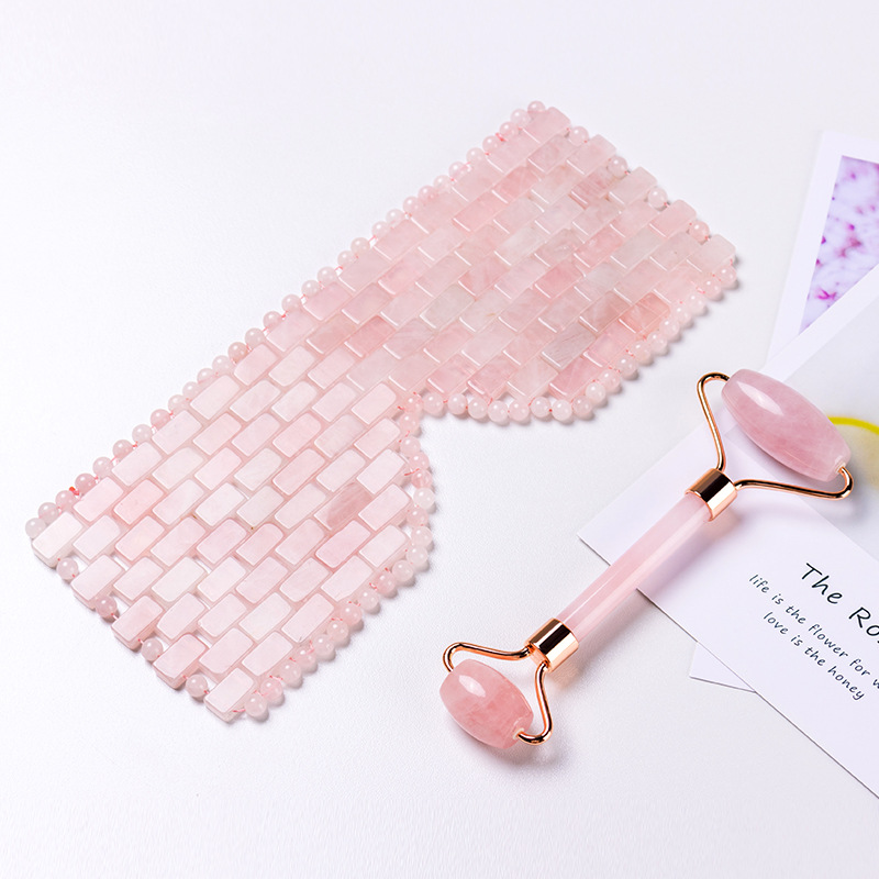 Natural Rose Quartz Eye Mask & Face Roller Set