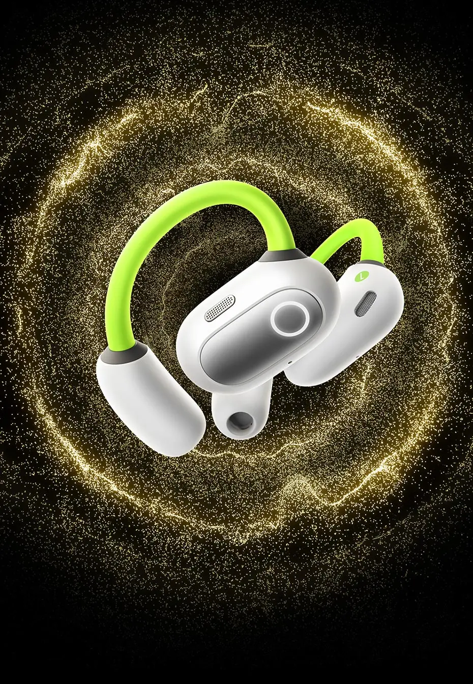 The open-ear, air conduction tech delivers immersive sound without pressure or discomfort. Unlike traditional earbuds, they sit outside your ears, giving you a more hygienic, breathable, and secure listening experience. Dual connectivity lets you pair with two devices at once, and the large 16.2 mm drivers ensure rich bass and clear highs no matter the volume level.