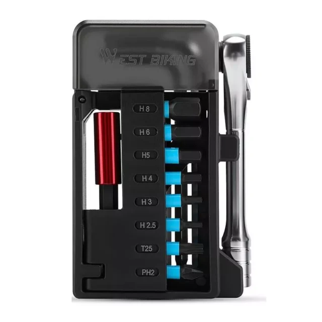 With bidirectional adjustment, high wear resistance, and a comfortable nylon-handled design, this compact set supports everything from quick seat tweaks to precision component adjustments. The assorted bit collection includes H2.5, H3, H4, H5, H6, H8, T25, T30, PH2, and SL4—giving you the flexibility to tackle many common bike repair needs with ease.