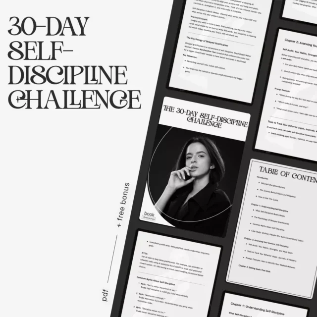 If you’re ready to take control of your time, habits, and mindset, The 30-Day Self-Discipline Challenge is your next step. This is more than just an ebook—it’s a complete self discipline challenge system designed to help you take action daily. Download it now and start building the self-discipline that supports every area of your life.