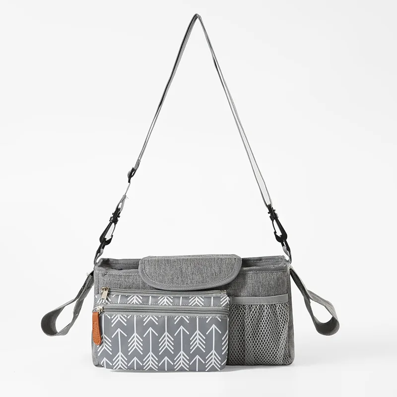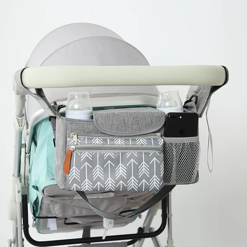 Crafted from high-quality cotton for durability and comfort, this stroller bag features a thoughtfully designed layout that holds everything from diapers and bottles to snacks and your phone. It hangs easily from most stroller handles, keeping your hands free while ensuring everything you need is right in front of you.