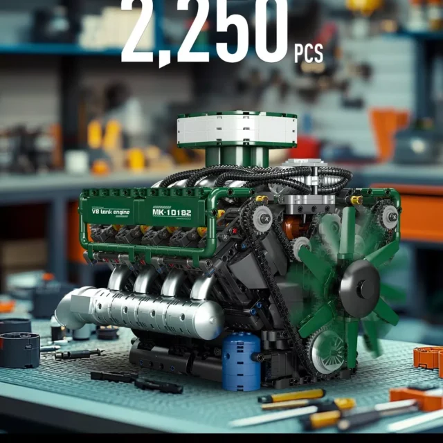This model comes with over 2,250 precision-fit building pieces and a clear, step-by-step color instruction guide for easy assembly. The engine’s design captures every authentic detail of a real V8 system, including transparent cylinder heads, moving pistons, and working turbochargers. Once complete, power it up with the included motor and battery box to see the pistons and cylinders move in perfect sync—just like a real engine.