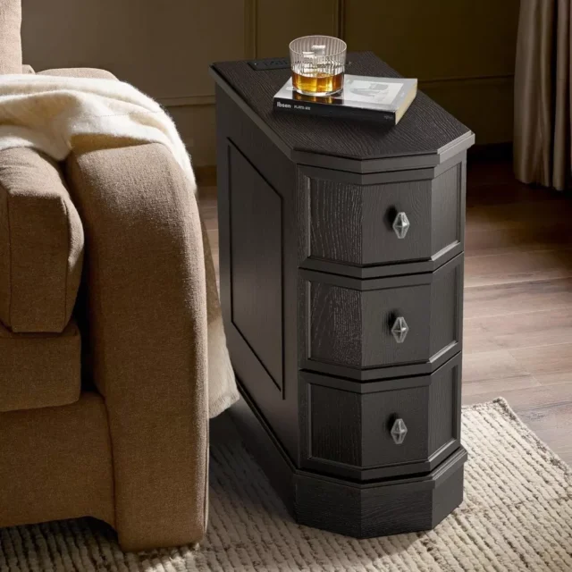 Bring elegance and practicality together with this Vintage Nightstand with Charging Station. Inspired by the graceful symmetry of Victorian design, this slim end table adds a touch of classic sophistication to any room. Whether placed beside your bed, sofa, or reading nook, its ornate details and smooth lines make it a statement piece that complements both traditional and modern interiors.