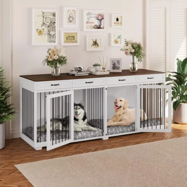 • Dual Functionality: This pet crate can also be used as a functional end table, allowing you to place items like dog toys, treats, or other accessories on the spacious wooden tabletop.