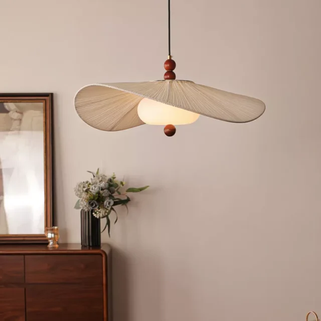The captivating feature is its authentic Wabi Sabi design that honors natural materials and imperfect beauty. Unlike mass-produced lighting that strives for flawless perfection, this chandelier celebrates the unique character of natural wood and the soft texture of fabric. The combination creates a warm, diffused glow that feels both ancient and contemporary. With its up-and-down lighting direction, it illuminates your space with gentle ambient light that enhances both the ceiling and floor, creating a truly immersive atmosphere.