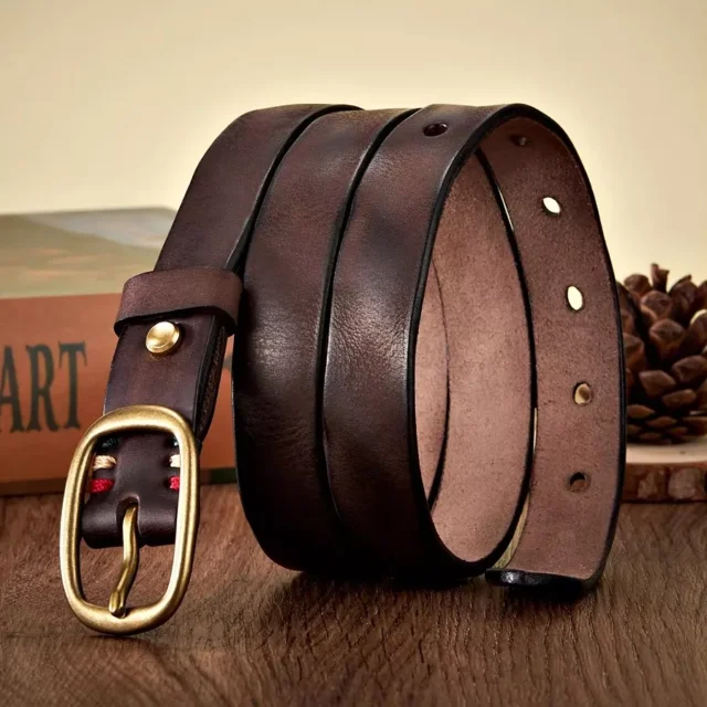 Women’s Genuine Leather Belt with Vintage Pin Buckle