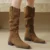 Women’s Suede Leather Square Toe Knee High Western Boots